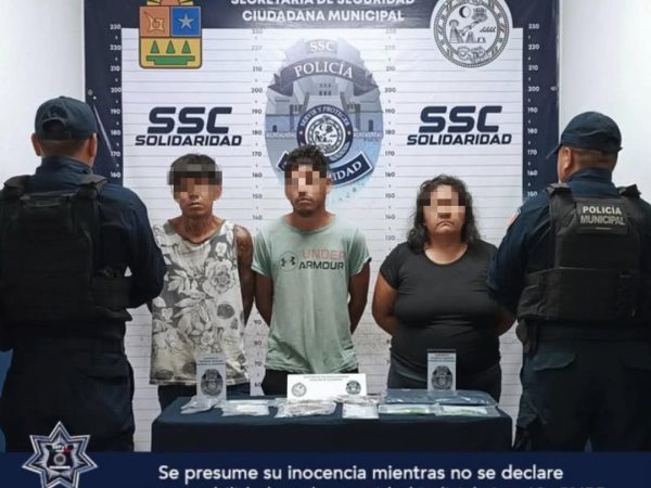 Agentes de la SSC Detienen a Tres Personas por Posibles Delitos Contra la Salud en la Colonia Cristo Rey en Playa del Carmen