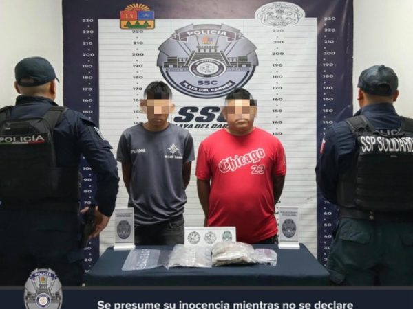 Detienen a Dos Sujetos por Posible Posesión de Estupefacientes en el Fraccionamiento de Villas del Sol en Playa del Carmen