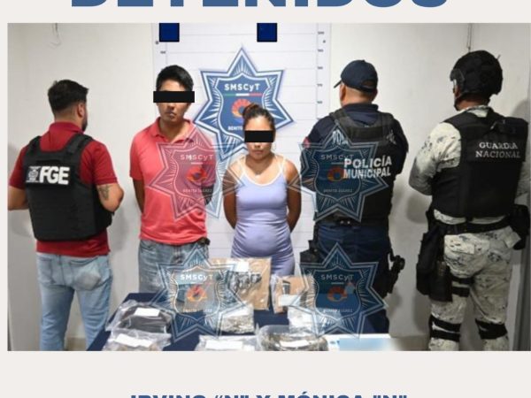 19 Ago. 2025Redacción / CAMBIO22 Cancún, 19 de agosto.– Autoridades de los tres niveles de gobierno detuvieron a dos personas vinculadas con delitos contra la salud…
