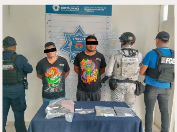 Detienen a Dos Sujetos por Presuntos Delitos Contra la Salud en la Colonia Nicte-Ha en Playa del Carmen