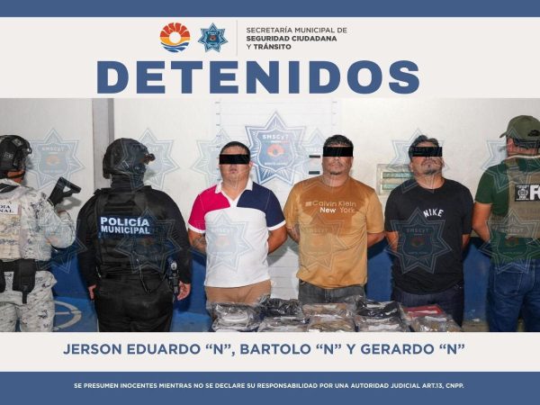 15 Sep. 2025Redacción / CAMBIO 22 Cancún, 15 de septiembre.- Tres hombres fueron detenidos en la Supermanzana 4 por su presunta participación en el delito de…
