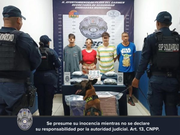 Aseguran a Cuatro Personas por Presuntos Delitos Contra la Salud y Portación de Arma de Fuego en la Colonia Centro de Playa del Carmen
