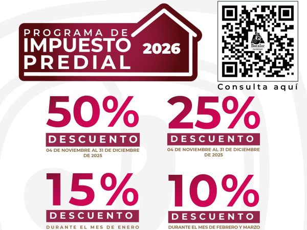 Aprueba Ayuntamiento de Bacalar Descuentos en el Pago del Impuesto Predial 2026