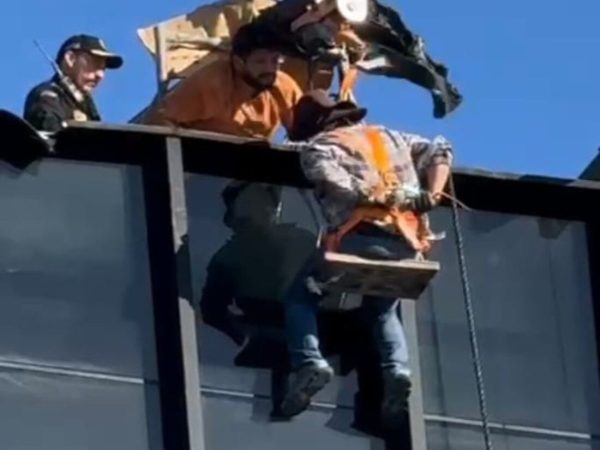 Rescatan a Dos Trabajadores que Limpiaban Vidrios y que Quedaron Colgando del Edificio