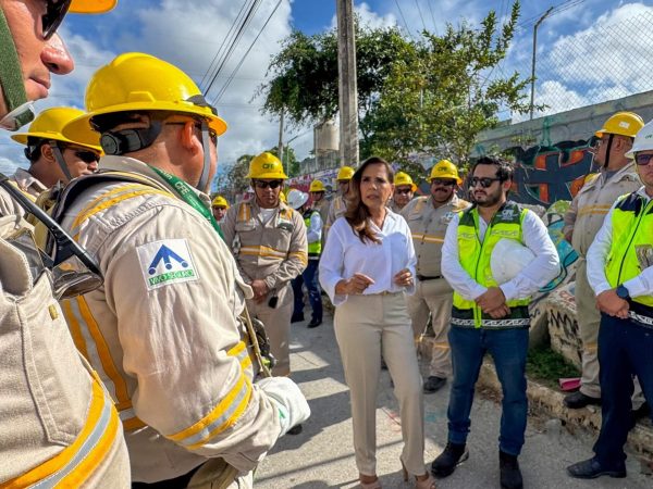 Supervisa Mara Lezama Trabajos de Restauración de Energía Eléctrica de la CFE en la Av. Huayacán, Kabah y Las Torres