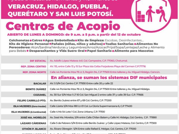 12 Oct. 2025La XI Zona Naval abrió centro de acopio en Chetumal el sábado y el DIF Quintana Roo y los 11 DIF municipales iniciaron acopio…