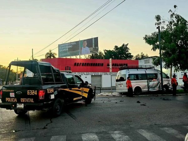 Unidad de la SSP Invade la Vía Contraria de la Mérida-Cancún y se Estrella Contra una Van de Pasajeros de la Ruta Mérida-Tecoh