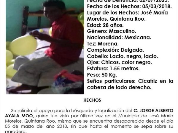 3 Jul. 2025El caso de Jorge Alberto Moo Ayala se convierte en la primera desaparición registrada en el municipio, pese a que apenas fue denunciada esta…