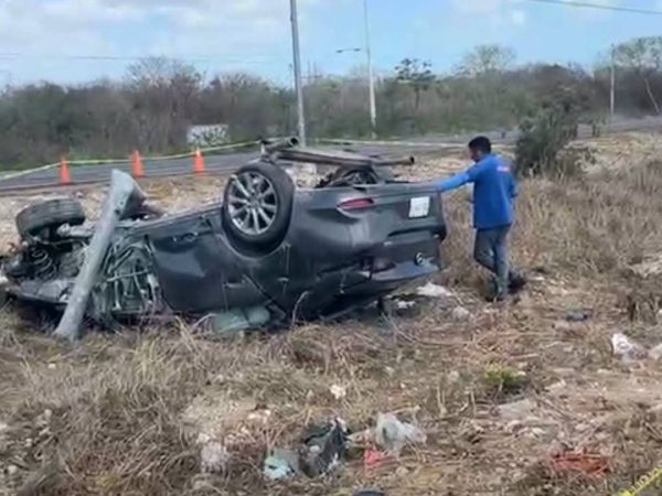 Mujer Pierde la Vida al Estrellarse Contra un Poste de Metal y la Barrera de Contención en la Via-Mérida Progreso