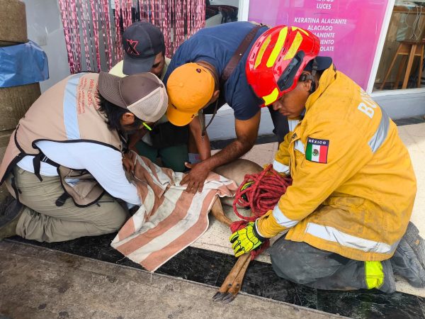 Un Ciervo Aparece en la Zona Turística de Playa del Carmen, es Resguardado y Reubicado por Autoridades Medioambientales