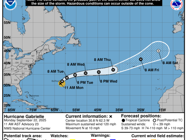 Dos zonas de Baja Presión Siguen a Gabrielle en el Atlántico