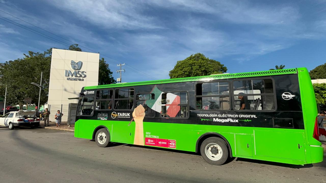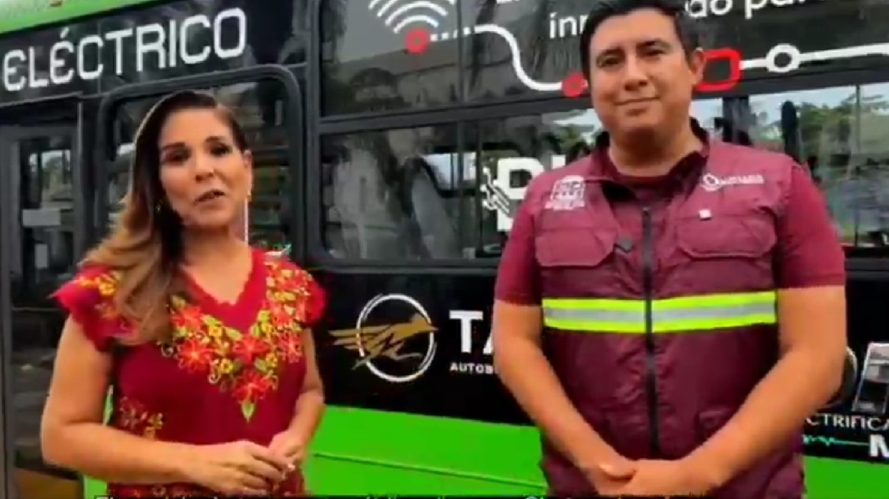 La gobernadora Mara Lezama presentó hace unos días el autobús eléctrico Taruk, un vehículo de 9.5 metros, 100 % fabricado en México y con autonomía hasta de 350 km por carga, como parte de la modernización del transporte público de Chetumal.