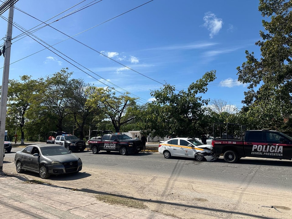 • Un taxi impactó una patrulla estacionada en la avenida Insurgentes, en Chetumal. Una pasajera resultó lesionada, pero no requirió traslado. Autoridades realizan las diligencias para deslindar responsabilidades