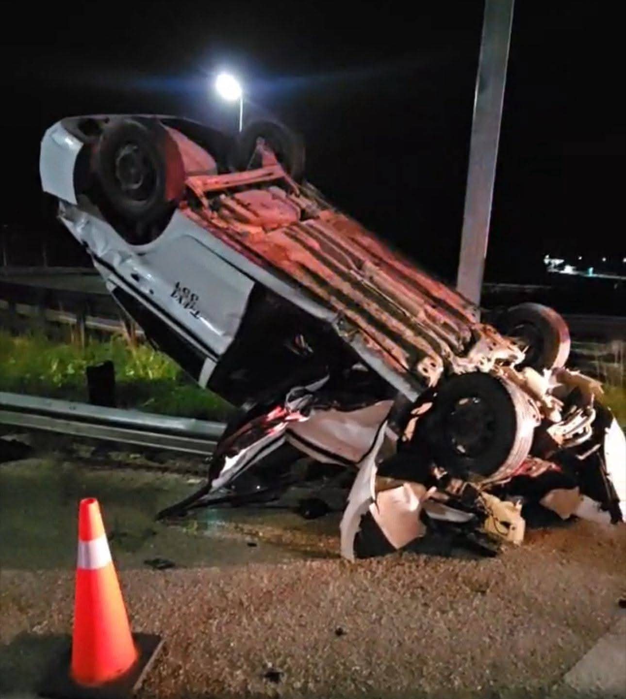 FELIPE CARRILLO PUERTO a 10 de octubre .– Un taxi terminó volcado luego de impactarse contra un muro de contención en el puente de salida hacia Mérida, en un accidente ocurrido la noche de este jueves, minutos antes de las 23:00 horas.