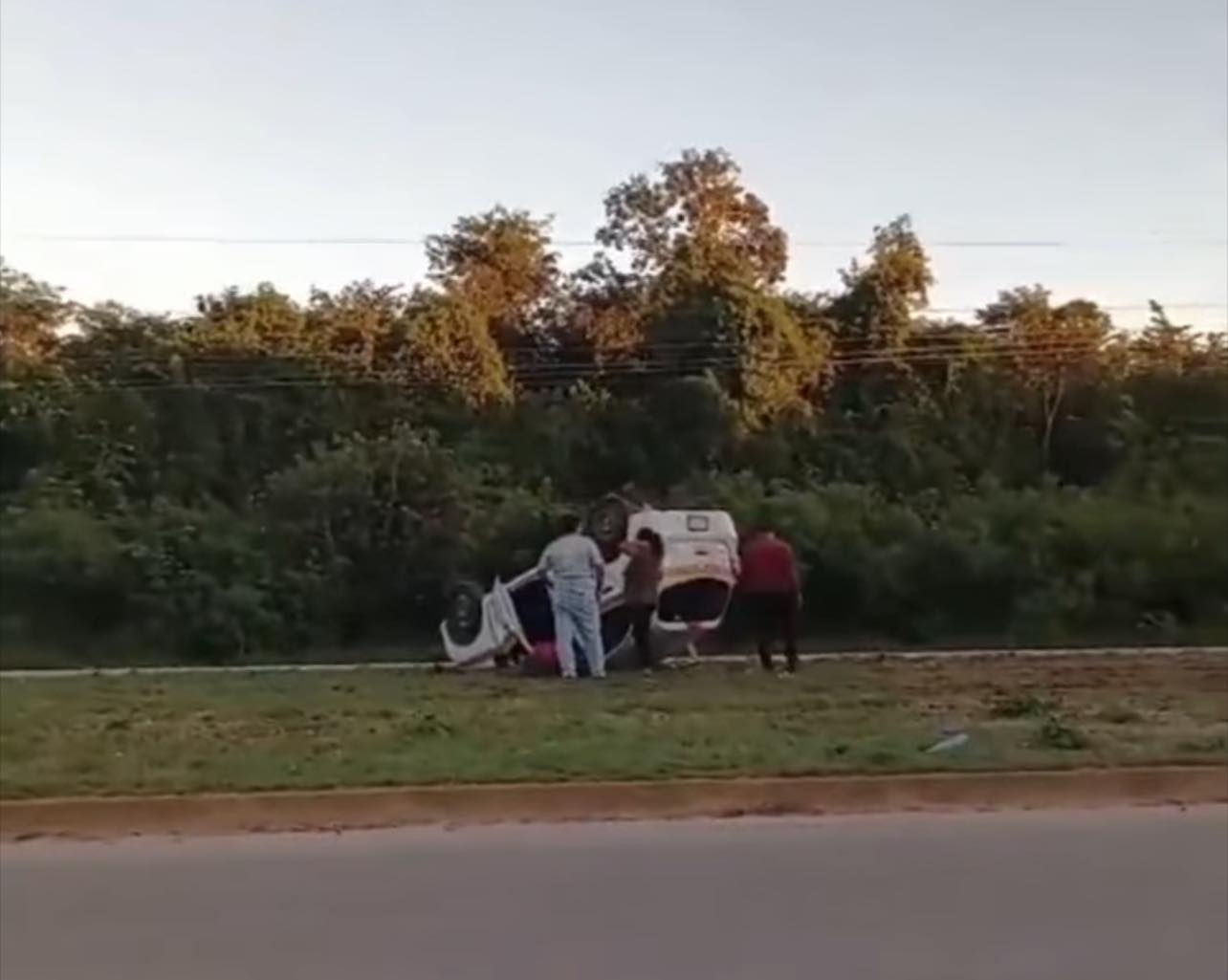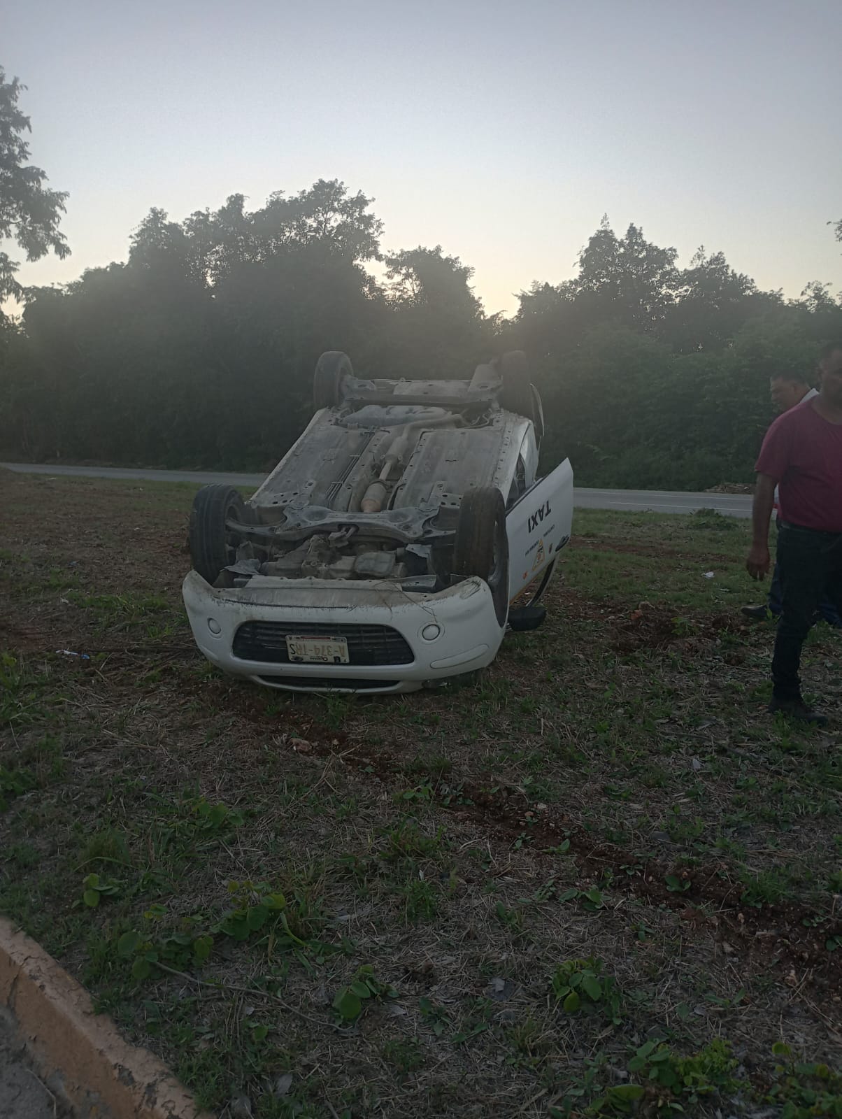 CHETUMAL, 17 de diciembre.- Un taxi con número económico 657 terminó volcado sobre la carretera que conecta Chetumal con Bacalar, específicamente a la altura del balneario Los Rápidos.
