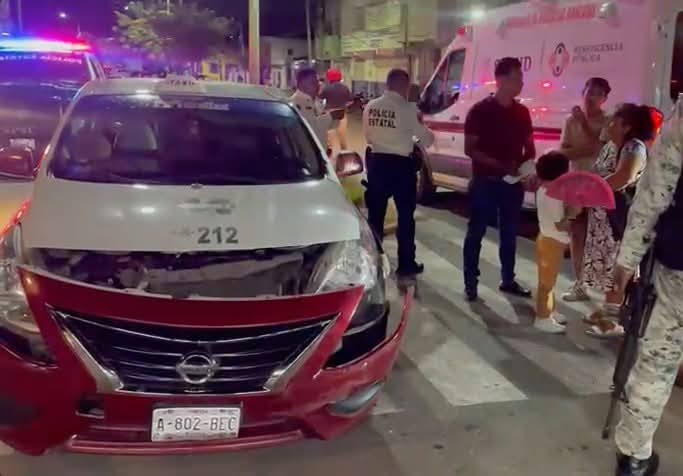 San Francisco de Campeche, Cam., 6 de octubre.- En un aparatoso accidente ocurrido en el cruce de la avenida Cuauhtémoc con la calle 102, en el Barrio de Santa Lucía, un taxi de la agrupación Murallas impactó una de las unidades del Tren Ligero, dejando un saldo de 4 personas lesionadas.