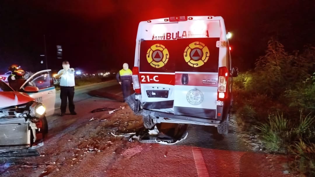 PLAYA DEL CARMEN, a 20 de enero de 2025.- Falta de iluminación, exceso de velocidad e ignorar las señalizaciones fueron la receta para un aparatoso accidente provocado por el conductor de un taxi contra una ambulancia de Protección Civil que atendía otro accidente, esto sobre la carretera federal 307
