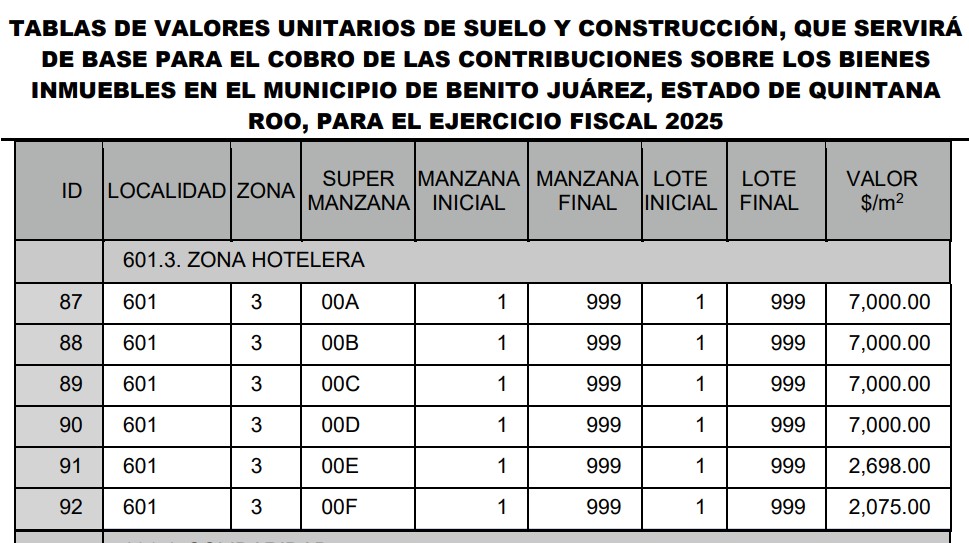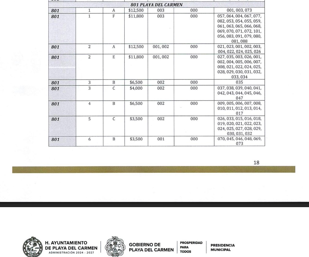 En Playa del Carmen, el predio turístico de mayor valor catastral será de 12 mil 500 pesos por metro cuadrado de terreno, mientras que el predio de mayor valor catastral en la zona hotelera de Cancún es de 7 mil pesos por metro cuadrado, una diferencia de 78 % más.