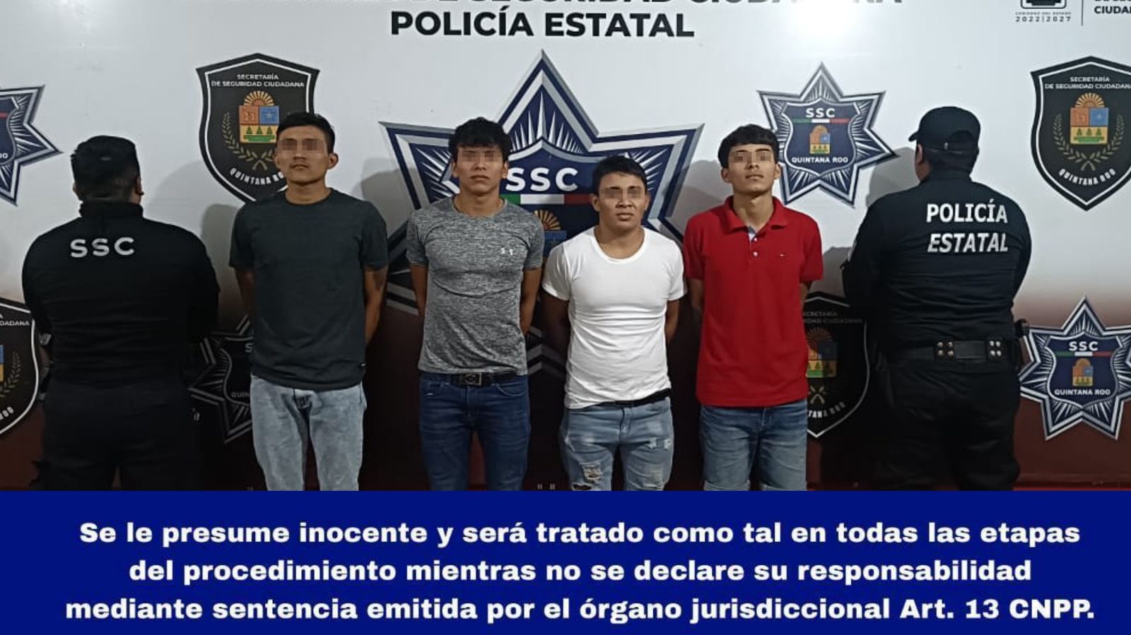 Pero la verdadera sorpresa vino después. Al ser intervenidos, los ocupantes del vehículo descendieron con una actitud desafiante y agresiva. Según el reporte oficial, insultaron a los agentes, lanzaron golpes e incluso intentaron despojar a uno de ellos de su equipo. La situación escaló rápidamente a una riña campal, obligando a los oficiales a solicitar refuerzos para someter a los agresores. Los detenidos fueron identificados como Alejandro Alberto “N”, Christian Isaac “N”, Sergio “N” y Yoshua Adair “N”, todos residentes del municipio de Benito Juárez.