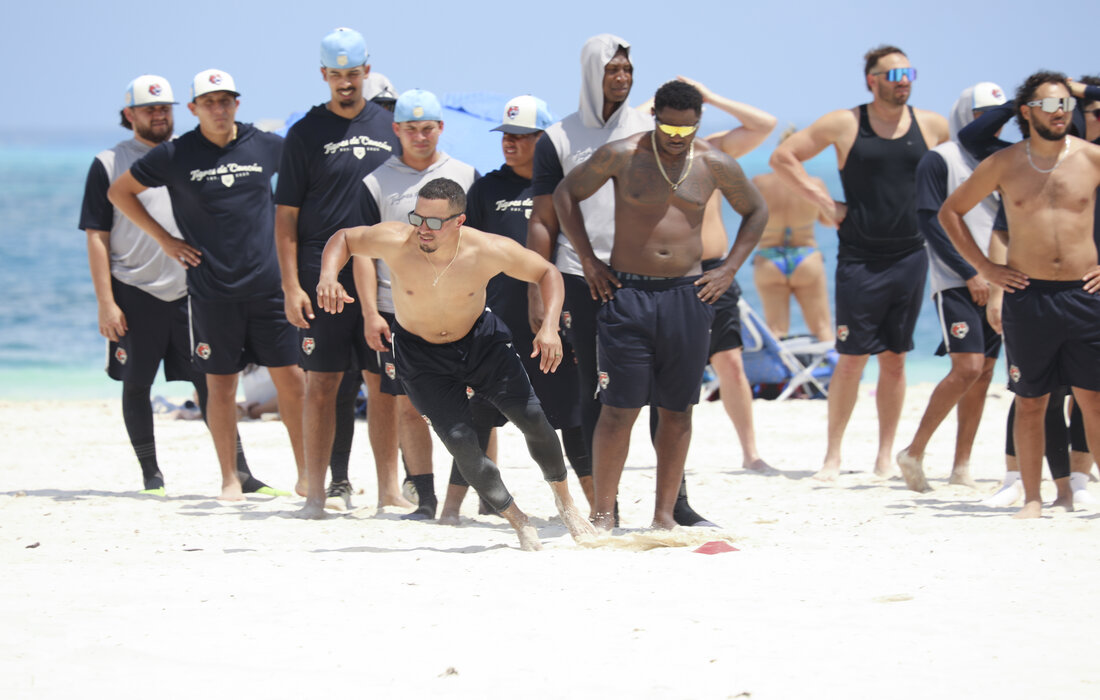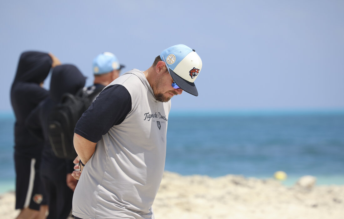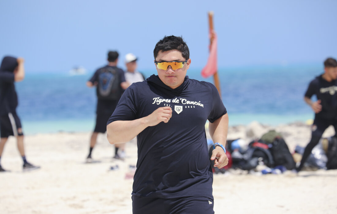 CANCÚN, Q. ROO a 25 de marzo.- Las dobles sesiones de práctica de los Tigres de Quintana Roo no fueron excepción este martes, toda vez que desde las nueve de la mañana, jugadores y cuerpo técnico hicieron acto de presencia en el parque “Félix ‘Chano’ Flores” del ejido Alfredo V. Bonfil, que en esta ocasión fue la sede del -Spring Training-, para posteriormente trasladarse a Playa Langosta, donde se realizaron trabajos físicos, tanto en la arena como dentro del mar.