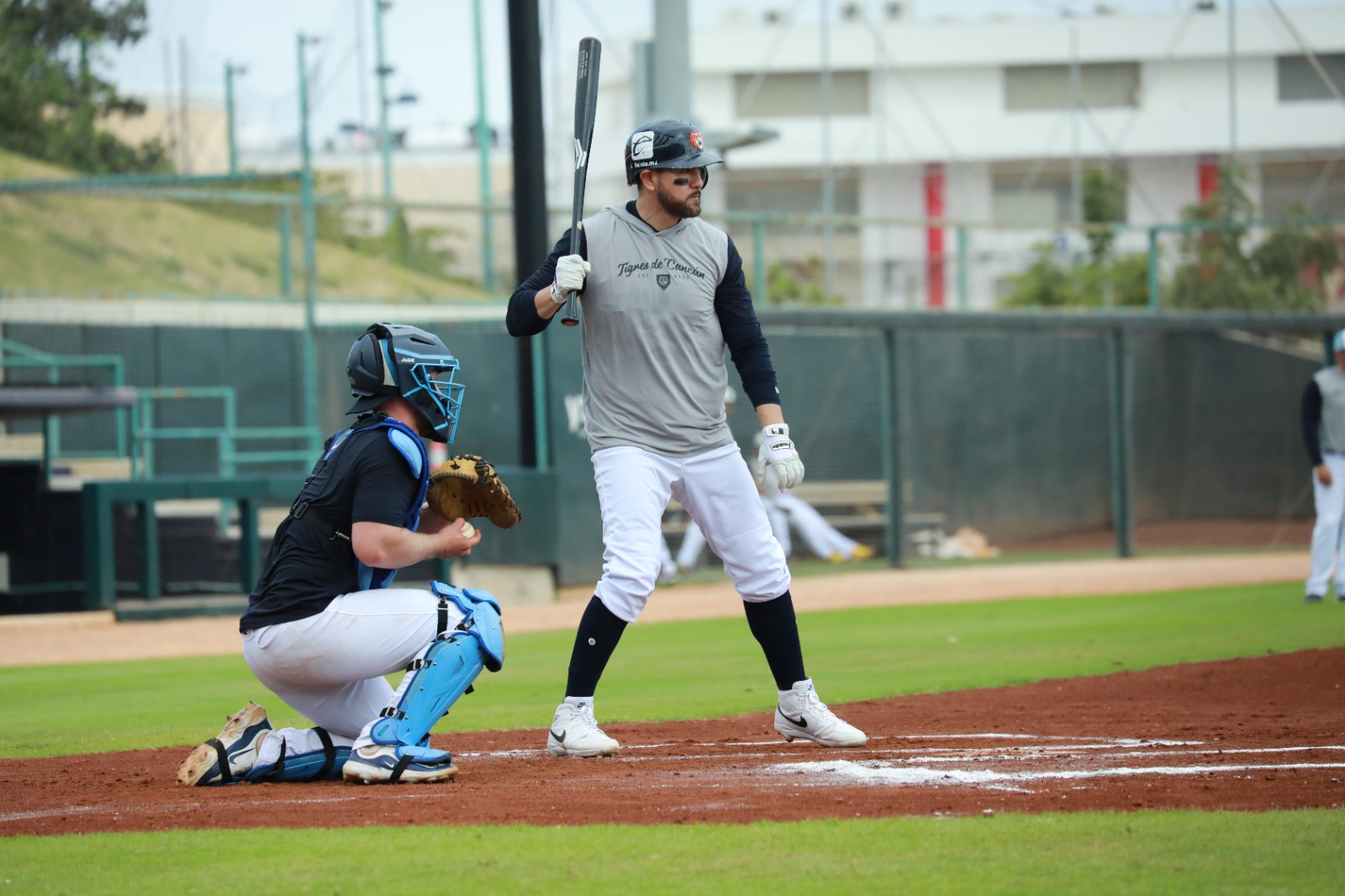 CANCÚN, Q. ROO a 23 de marzo.- En medio de una mañana soleada y calurosa en Cancún, los Tigres de Quintana Roo completaron su séptima práctica de -Spring Training-, cuando en el Estadio “Sherwin Williams Beto Ávila”, realizaron su primer juego interescuadras, mismo que tuvo una duración de un par de horas, en la que los dos equipos formados recibieron el nombre de los receptores, por lo que el llamado -Team Robert Emery- le ganó 2-0 al -Team Alexis Wilson-.