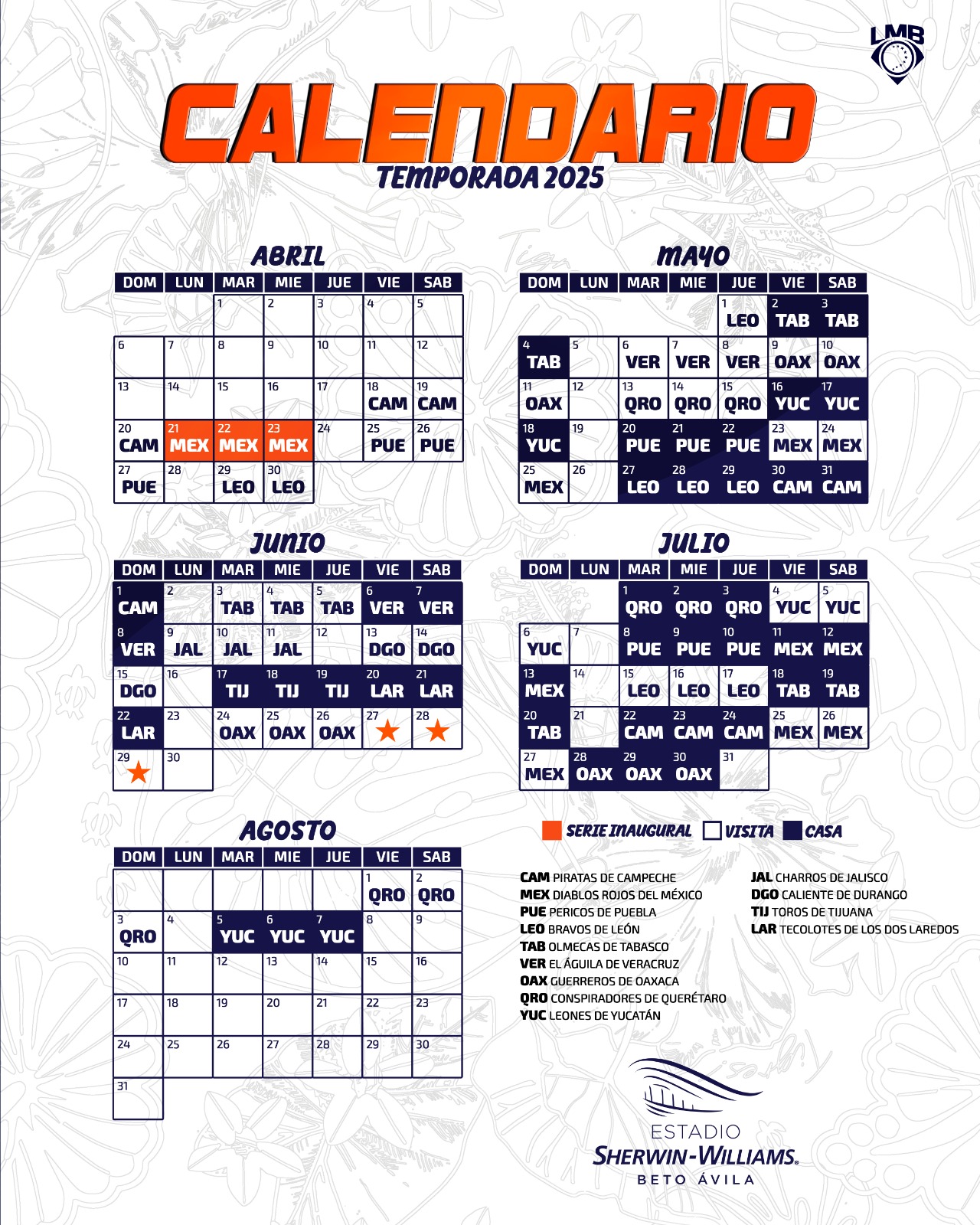 A continuación presentamos el calendario 2025 de los Tigres de Quintana Roo: