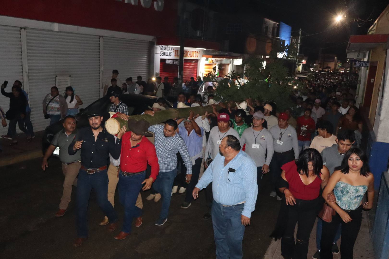 Es preciso destacar que un gran contingente de habitantes salió del estacionamiento del Palacio Municipal, desde donde tomaron el tronco del árbol sagrado y recorrieron las calles hasta llegar al tablado, en donde finalmente lo sembraron.
