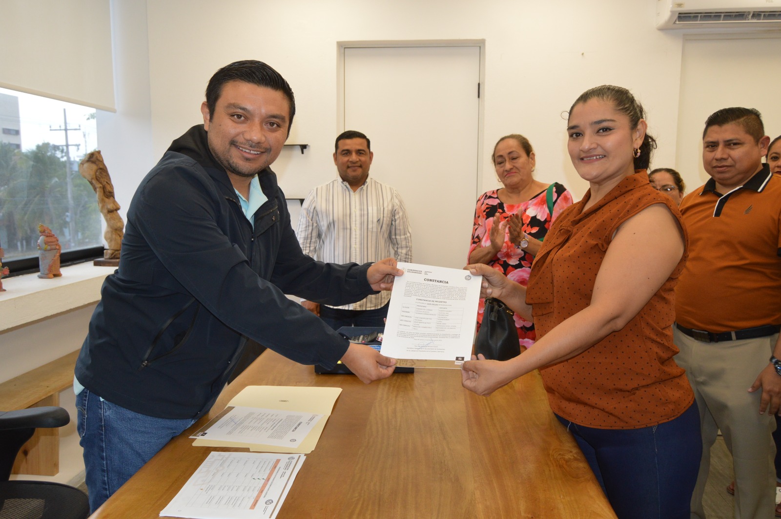 El pasado jueves, a los tres candidatos se les hizo entrega de sus constancias para participar en la contienda electoral por parte del Secretario General del Ayuntamiento, Luis Herrera Quiam, quien también es presidente de la Comisión Operativa de la Asamblea Vecinal para la Elección.