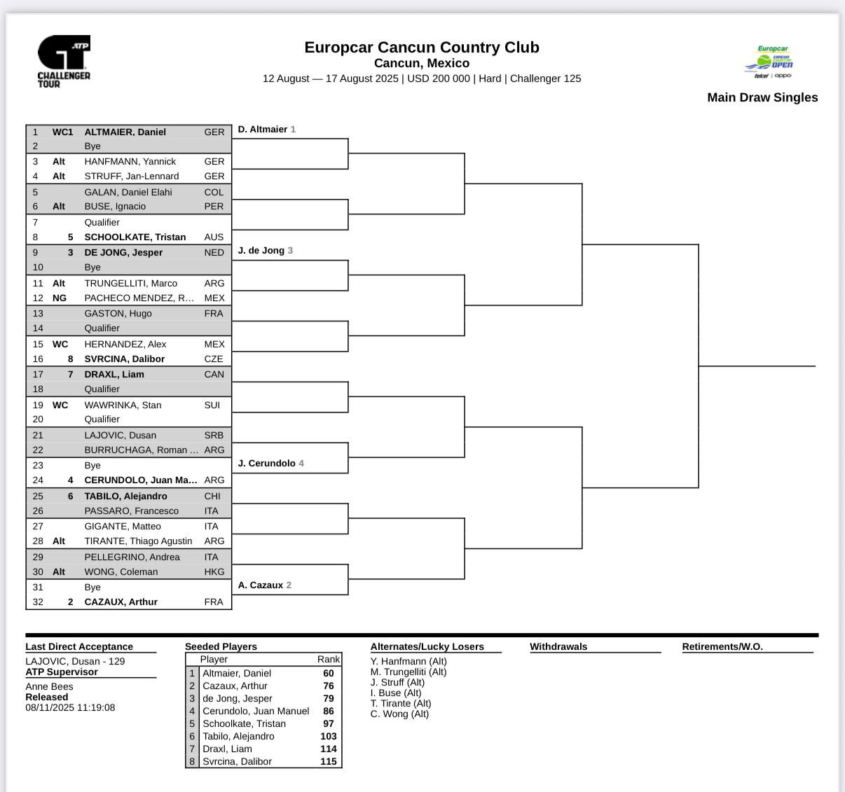 En cuanto a los mexicanos, Rodrigo Pacheco fue ubicado como sembrado 12 y debutará ante el argentino Marco Trungelliti; mientras que Alex Hernández abrirá su participación contra el kazajo Dalibor Surcina. También destacan el neerlandés Jesper de Jong como tercer clasificado y el argentino Juan Manuel Cerúndolo, cuarto sembrado del torneo.