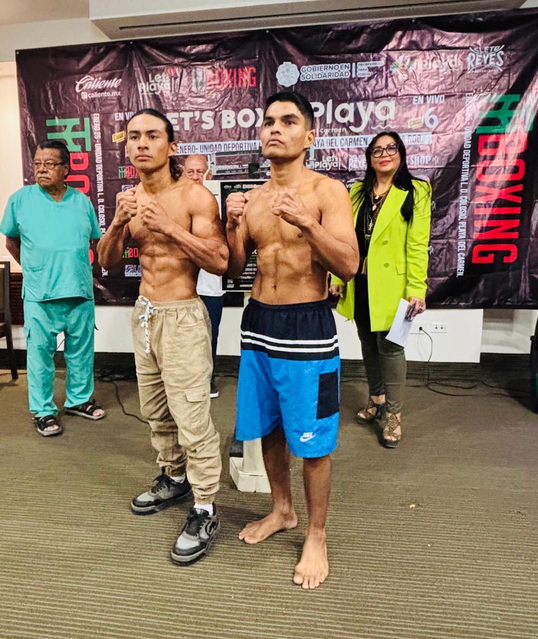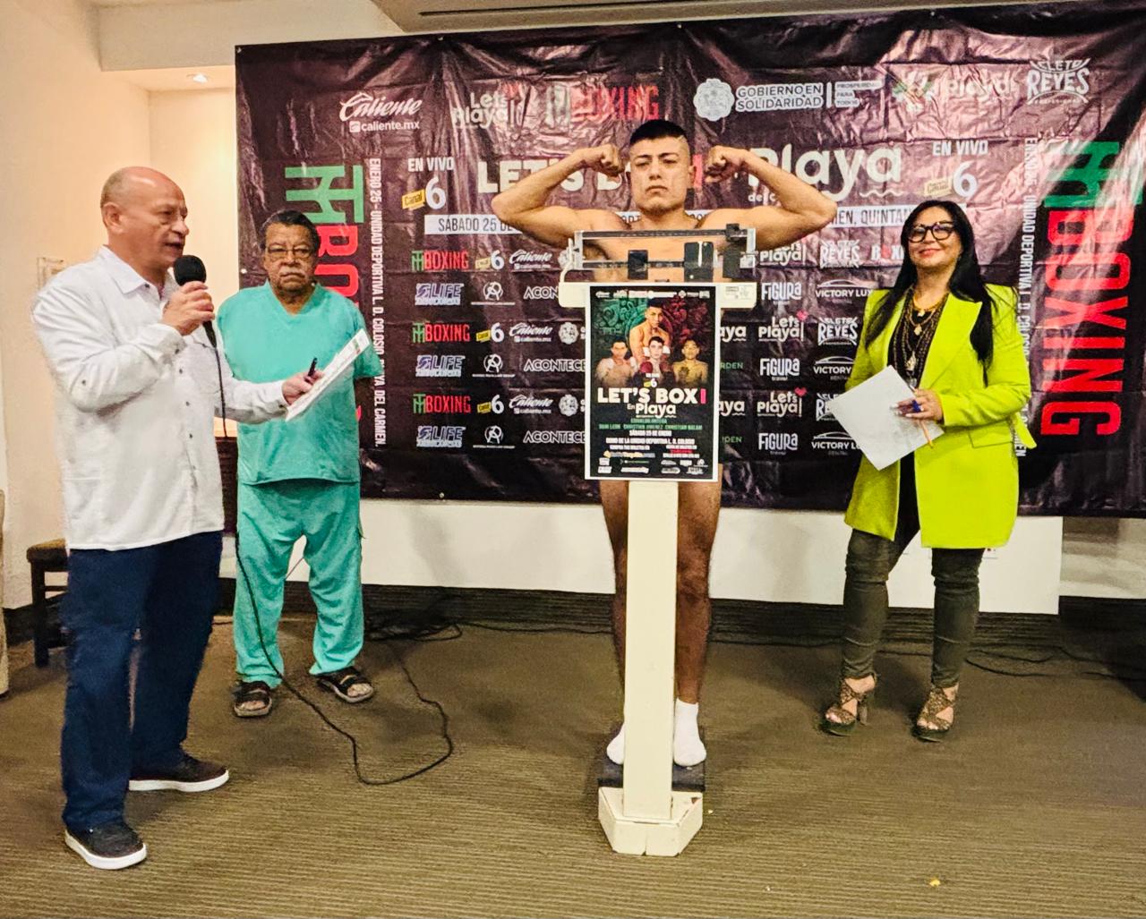 CANCUN, Q. ROO. 24 de enero.- Los protagonistas de la velada “Let’s Box” pasaron la báscula y se declaran listos para deleitar a la afición de Playa del Carmen con una espectacular función gratuita este sábado 24 de enero a partir de las 20:00 horas en el Domo de la Unidad Deportiva Luis Donaldo Colosio.