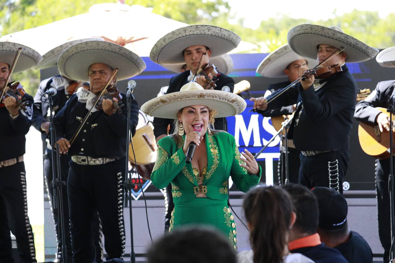 Sin duda alguna la gran sorpresa de la tarde fue la cantante de regional mexicano Deyra Barrera, quien con un traje de charra en color verde y detalles en dorado, destacó con su gran voz y particular carisma, acompañada del mariachi durante más de dos horas, interpretando incluso temas como el Corrido de Fernando Valenzuela.