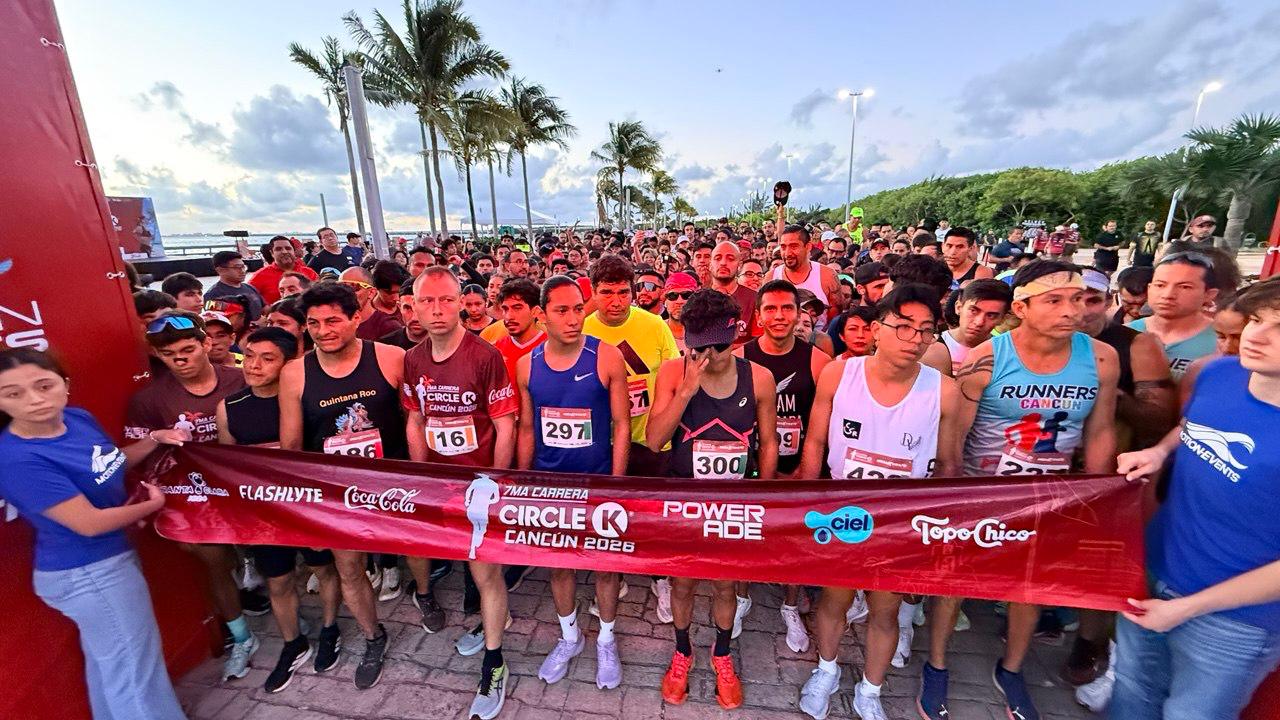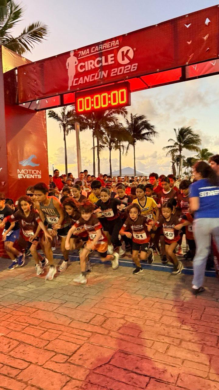 CANCÚN, Q. ROO a 25 de enero 2026.- La -VII Carrera Circle K- celebrada la mañana de este último domingo del mes de enero, significó la primera competencia atlética del año, la cual tuvo distancias infantiles, además de los 2.5 kilómetros de caminata, así como las carreras de 5 y diez kilómetros, en distintos categorías, incluyendo la de Veteranos Plus, que los propios corredores solicitaron y que el Instituto Municipal de Cultura Física y Deportes de Benito Juárez (IMCFDBJ) se encargó de aprobar.