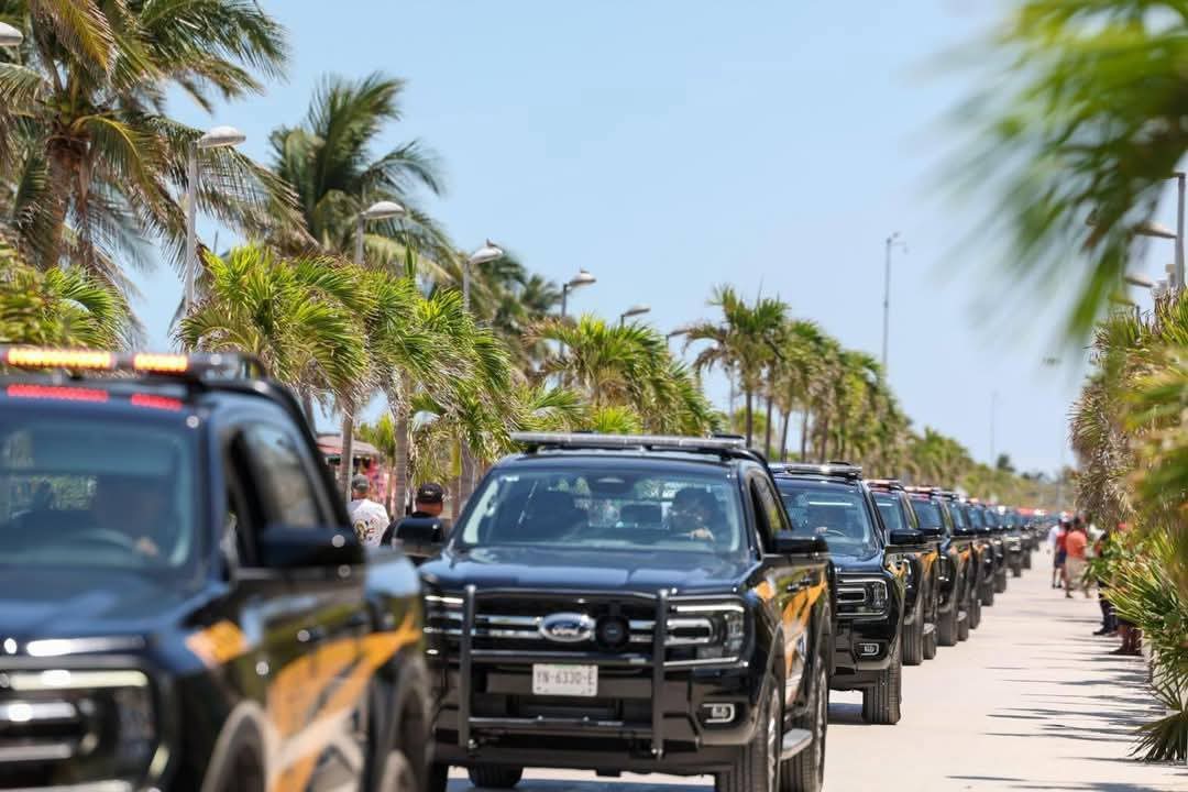 En ese sentido, explicó que se trabajará de manera coordinada con el Ejército, la Marina, la Guardia Nacional y policías municipales. Por lo que toca a las unidades entregadas este día, son 43 camionetas SUV Ford Explorer modelo 2025; 200 camionetas Ford Ranger 4×4 modelo 2024; 24 camionetas Ford F-150; 29 motocicletas Suzuki y BMW especialmente adaptadas como patrullas y 29 vehículos sedán Mazda con sistema de videovigilancia interior y exterior.