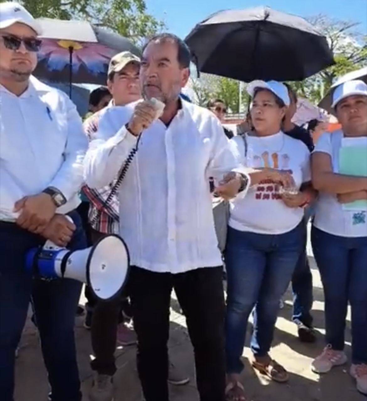 “Queremos dejar en claro que nuestra intención no es afectar a los alumnos, ni a los padres de familia, es lo que menos queremos, lo que queremos es ver resultados, que nos atiendan y atiendan las demandas de toda la base, de distintos sectores, no solo el educativo, porque hay enfermeras, así como otras personas y nos gustaría que se comprometa por escrito a que no va a haber ningún descuento o represalia en contra de ninguno; es importante recalcar que no daremos ningún paso atrás y el plantón sigue hasta que se cambie la iniciativa de reforma, el pliego está muy claro y no es negociable.”