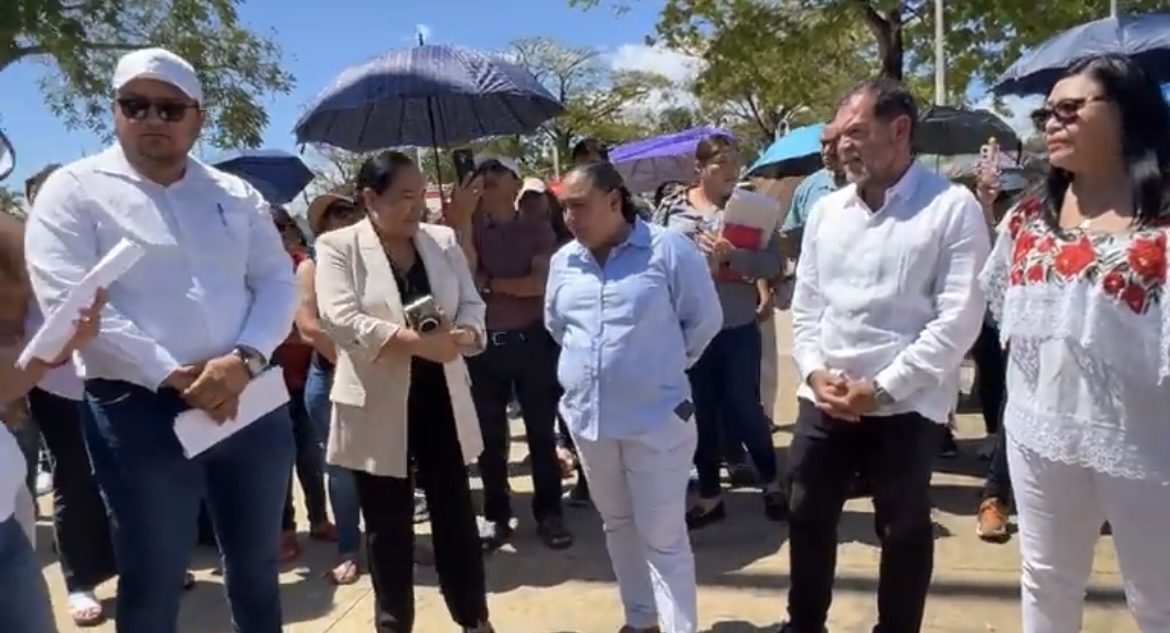 Pasado el mediodía, se presentó al lugar donde acampan desde el pasado miércoles, la secretaria de Gobierno Cristina Torres Gómez, acompañada por la titular de la SEQ Elda Xix Euán y los diputados federales Humberto Aldana y Mildred Ávila, a quienes entregaron su pliego petitorio y comprometieron para que no existan represalias en su contra, al mantenerse ausentes de las aulas y suspender labores.