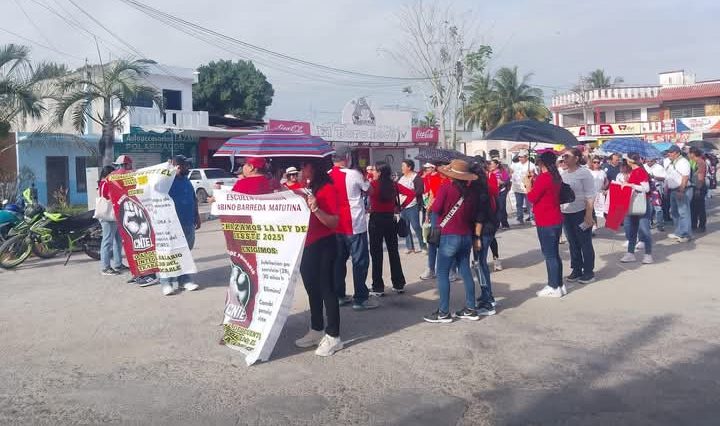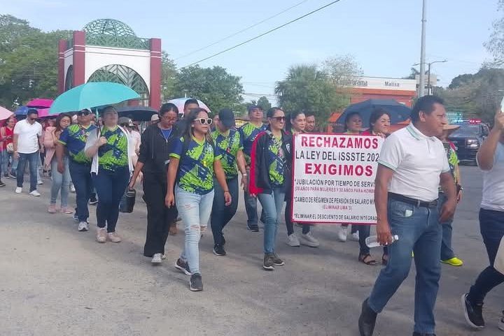 Docentes de Tizimín tomaron las calles en apoyo al paro nacional, exigiendo la derogación de la Ley del ISSSTE.