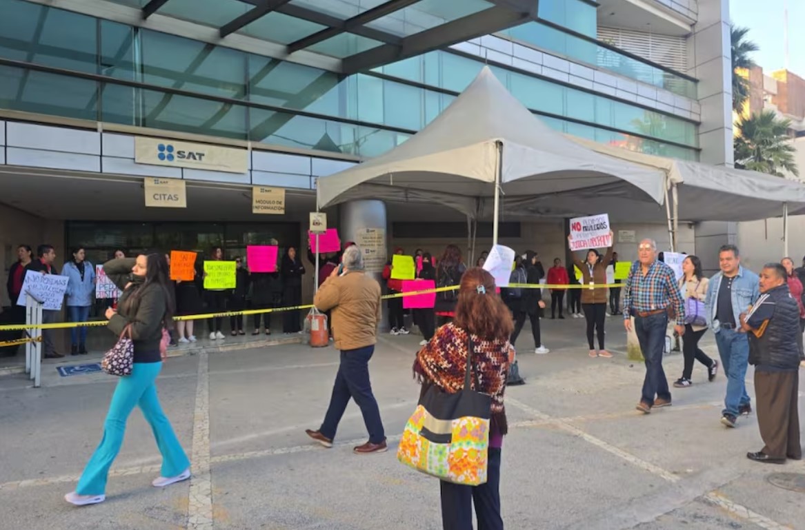 Mientras tanto, a nivel nacional la presidenta de México, Claudia Sheinbaum, minimizó la protesta y dijo que la dirección del SAT y la Secretaría del Trabajo y Previsión Social atienden las inconformidades.