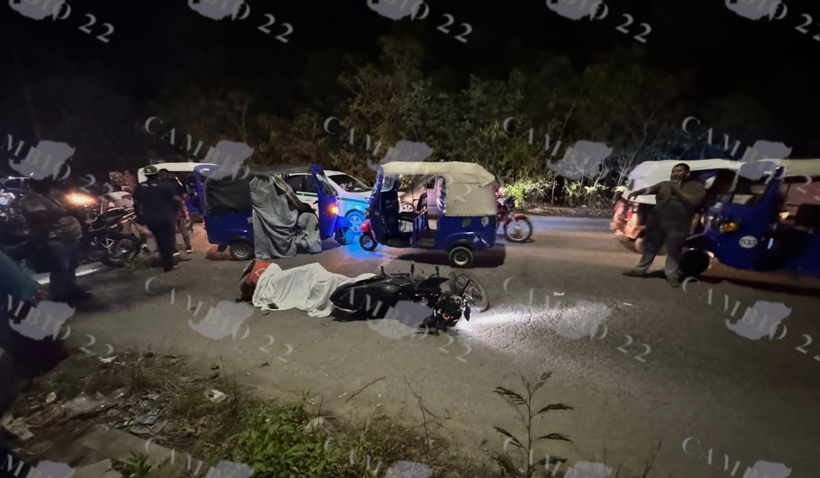 CANCÚN, Q. Roo, 16 de mayo.- La entrega que nunca llegó. Un motociclista, presunto repartidor de la plataforma Didi, murió de forma fulminante tras ser embestido por un mototaxi en un trágico accidente que conmocionó a vecinos del fraccionamiento Aloja, en la Región 244.