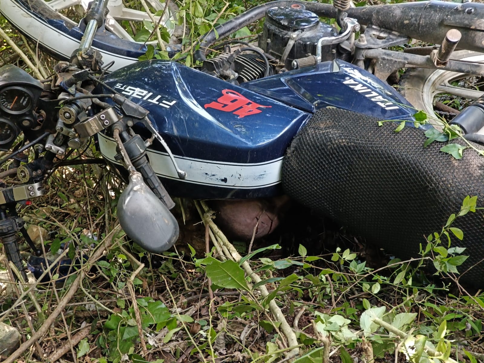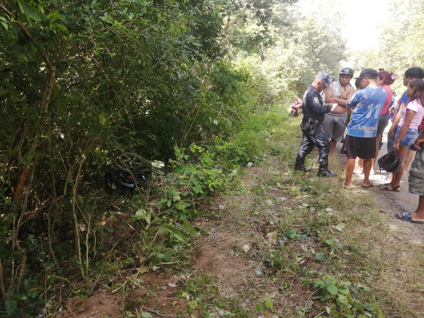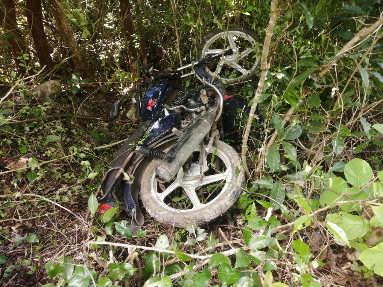Al sitio acudieron las autoridades locales de seguridad vial, quienes encontraron la motocicleta, una Italika de color azul con blanco, unos cuatro metros dentro de la maleza. El vehículo se encontraba recostado sobre su lado izquierdo, mientras que el cuerpo del conductor estaba atrapado debajo de la motocicleta. Según los indicios en el lugar, el motociclista circulaba en dirección norte a sur y el vehículo quedó orientado de poniente a oriente.