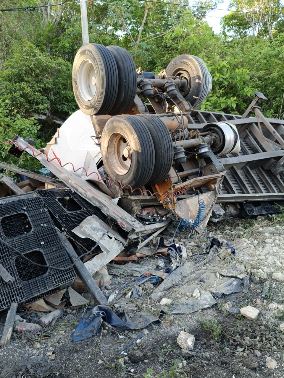 El accidente ocurrió cerca del entronque hacia el aeropuerto de Tulum. >De acuerdo con los primeros reportes, el conductor presuntamente se quedó dormido al volante, perdió el control del vehículo, salió de la cinta asfáltica y, al intentar reincorporarse, terminó volcado sobre uno de los carriles