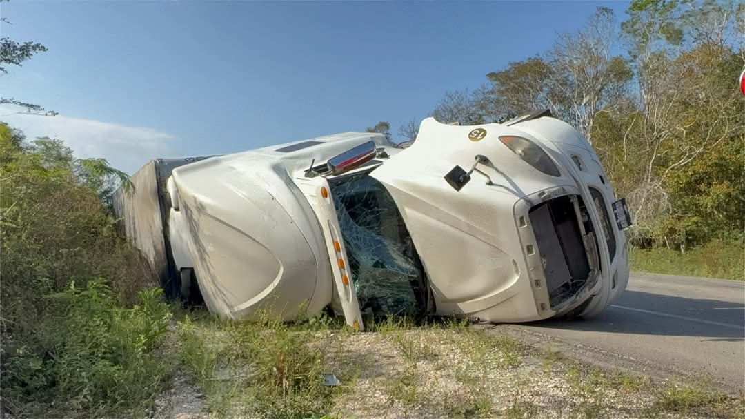 El accidente ocurrió alrededor de las 08:20 horas, a la altura del kilómetro 124+400 del tramo Felipe Carrillo Puerto – Uh May. De acuerdo con versiones recabadas en el lugar, se presume que el conductor de la pesada unidad dormitó al volante, lo que ocasionó que se saliera del camino.