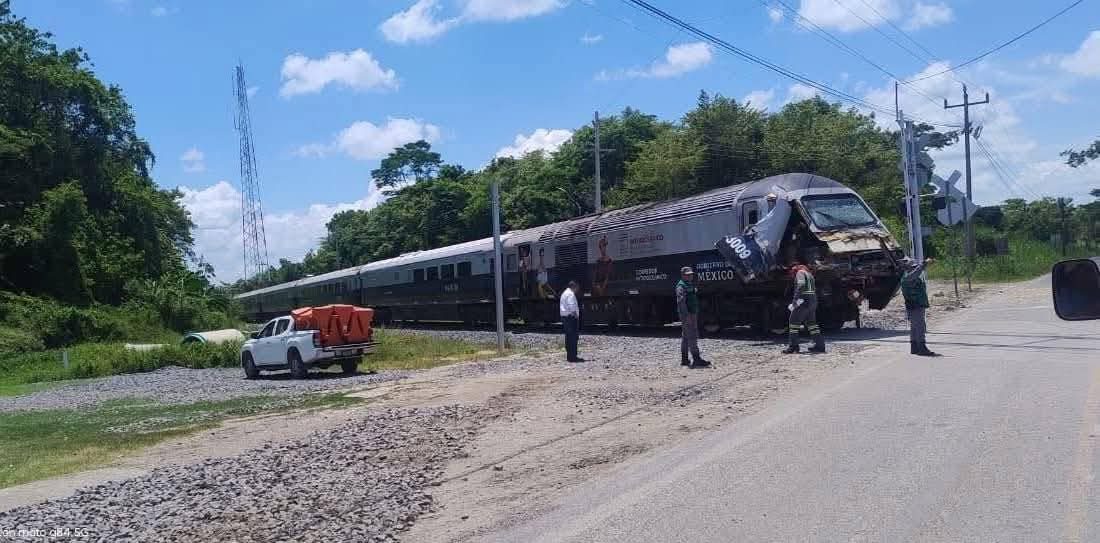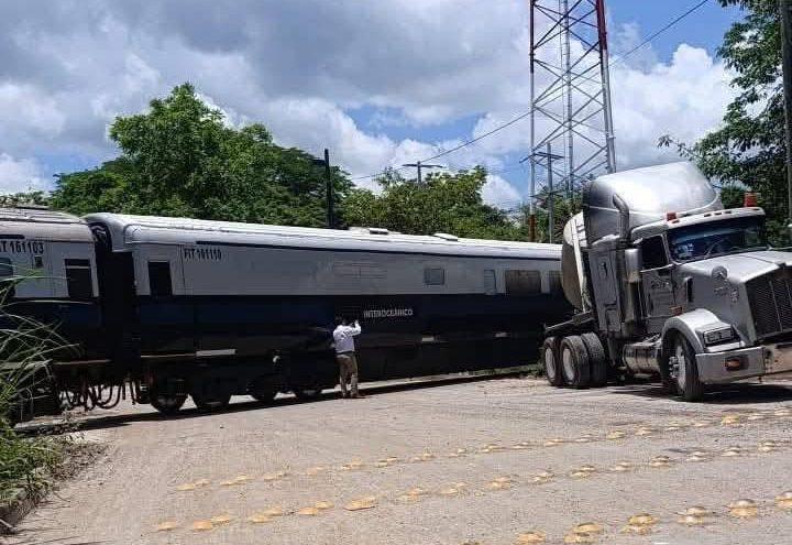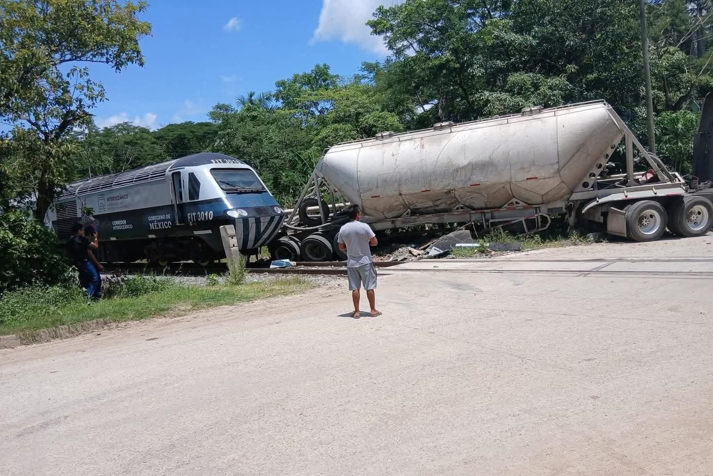 Un aparatoso accidente se registró este miércoles en el municipio de Macuspana, Tabasco, cuando un tráiler fue embestido por el Tren Interoceánico cerca de la zona de Apasco.