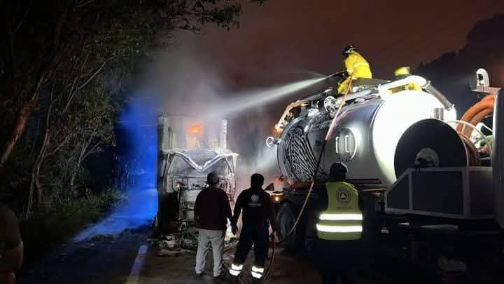 El primer siniestro fue reportado en la noche, cerca de las 23:00 horas, del miércoles 22 de enero, en el kilómetro 99 de la carretera estatal Frontera a Ciudad del Carmen, cerca del poblado de San Pedro, donde aparentemente un corto circuito generó el incendio que consumió un tráiler.