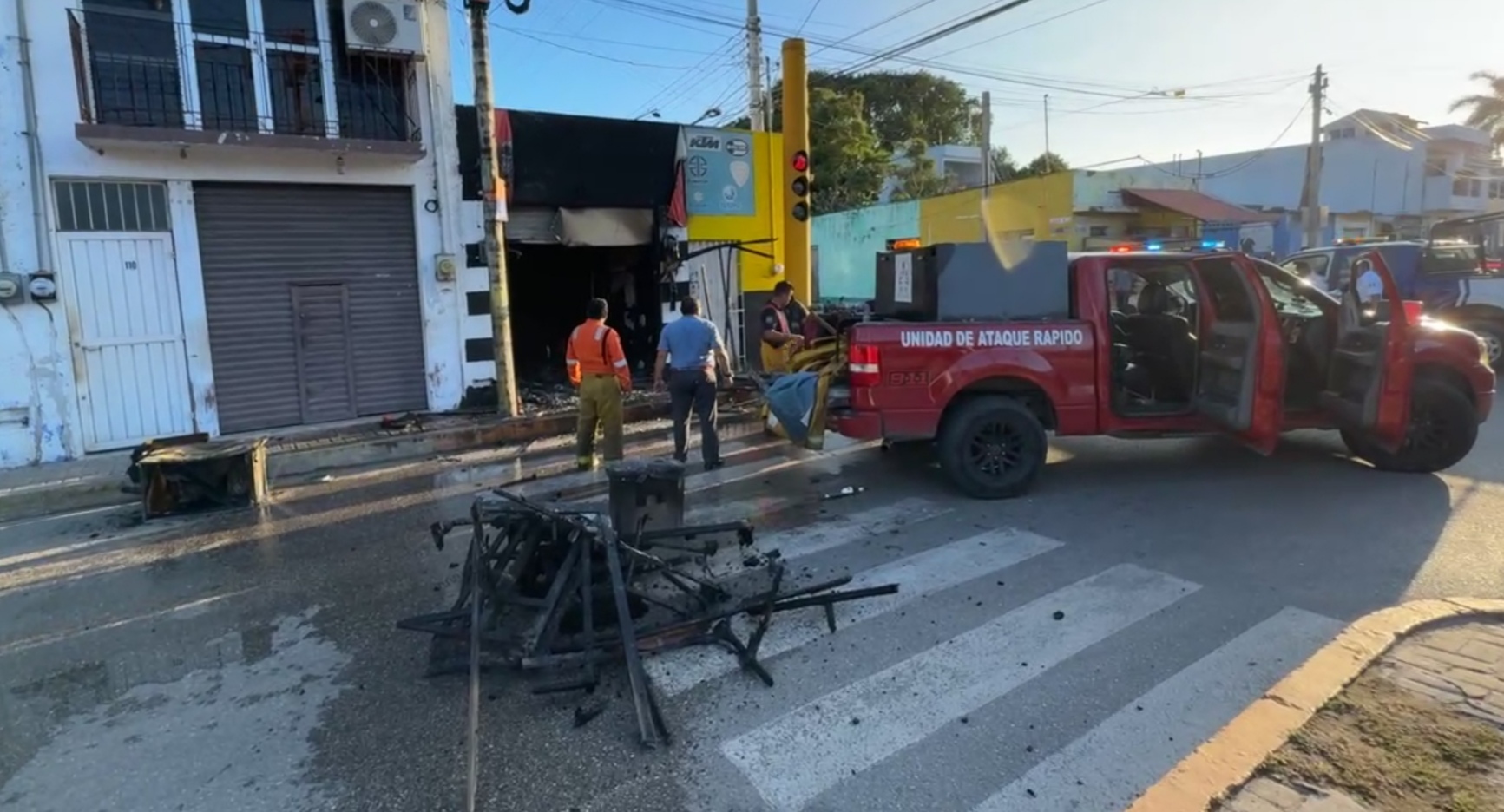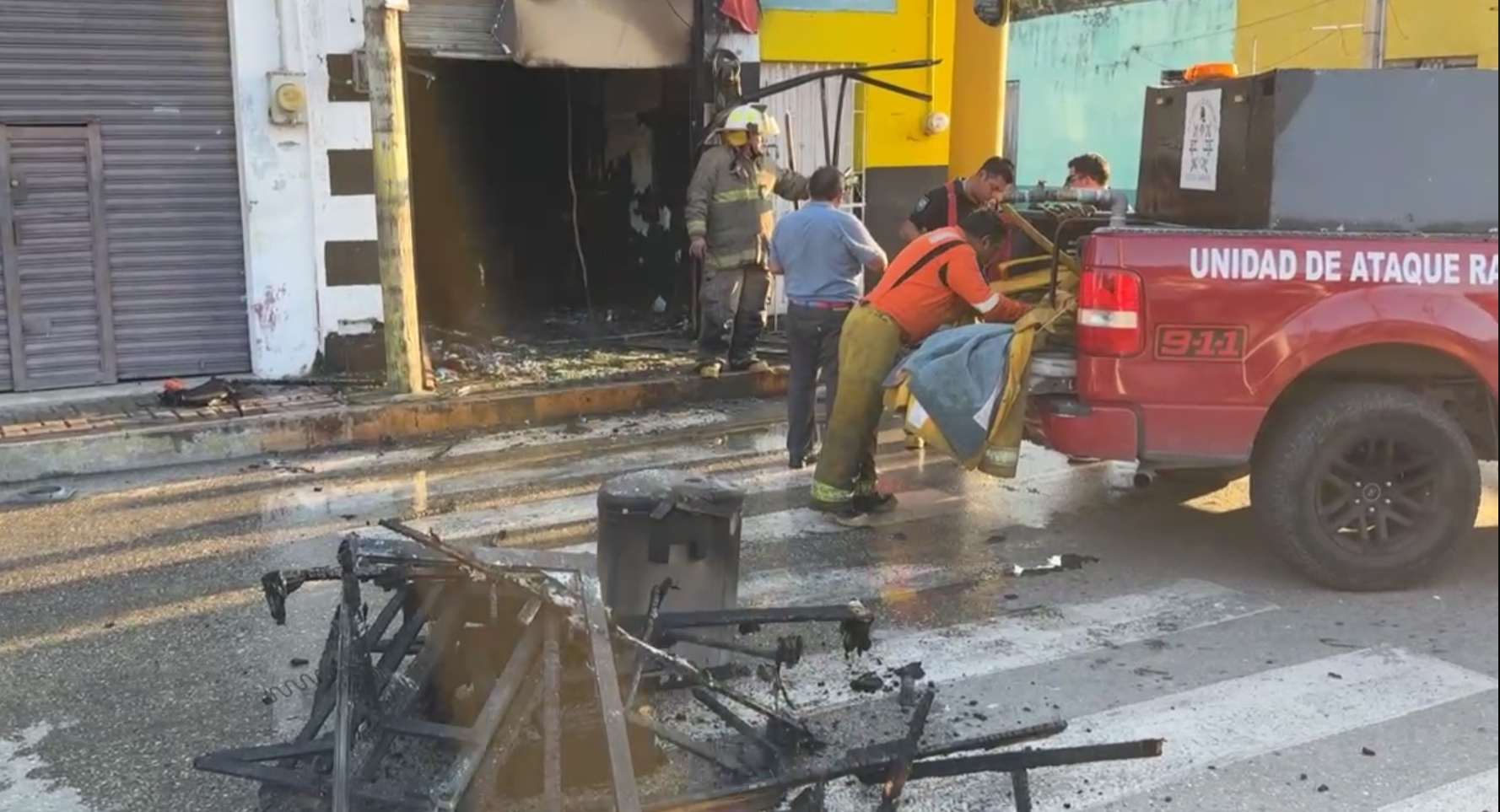 El fuego consumió muebles, equipo y todo el local, incluso la fachada, dejando pérdidas materiales de mayor cuantía.