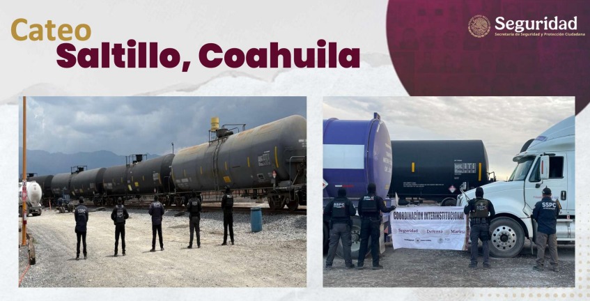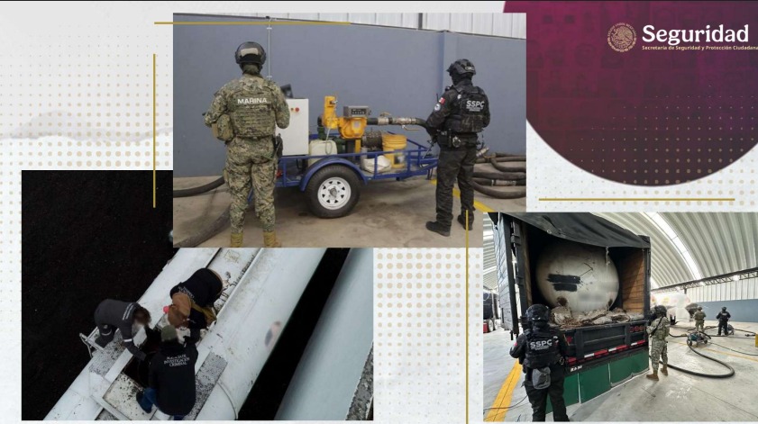 Finalmente, en seguimiento a líneas de investigación desarrolladas tras el aseguramiento de un buque y 10 millones de litros de hidrocarburo en Tampico, Tamaulipas, el pasado 29 de marzo del 2025, se realizó un cateo en Saltillo, Coahuila, donde se ubicó un predio utilizado para resguardar vehículos de transporte de carga y contenedores, donde se recuperaron casi dos millones de litros de hidrocarburo.