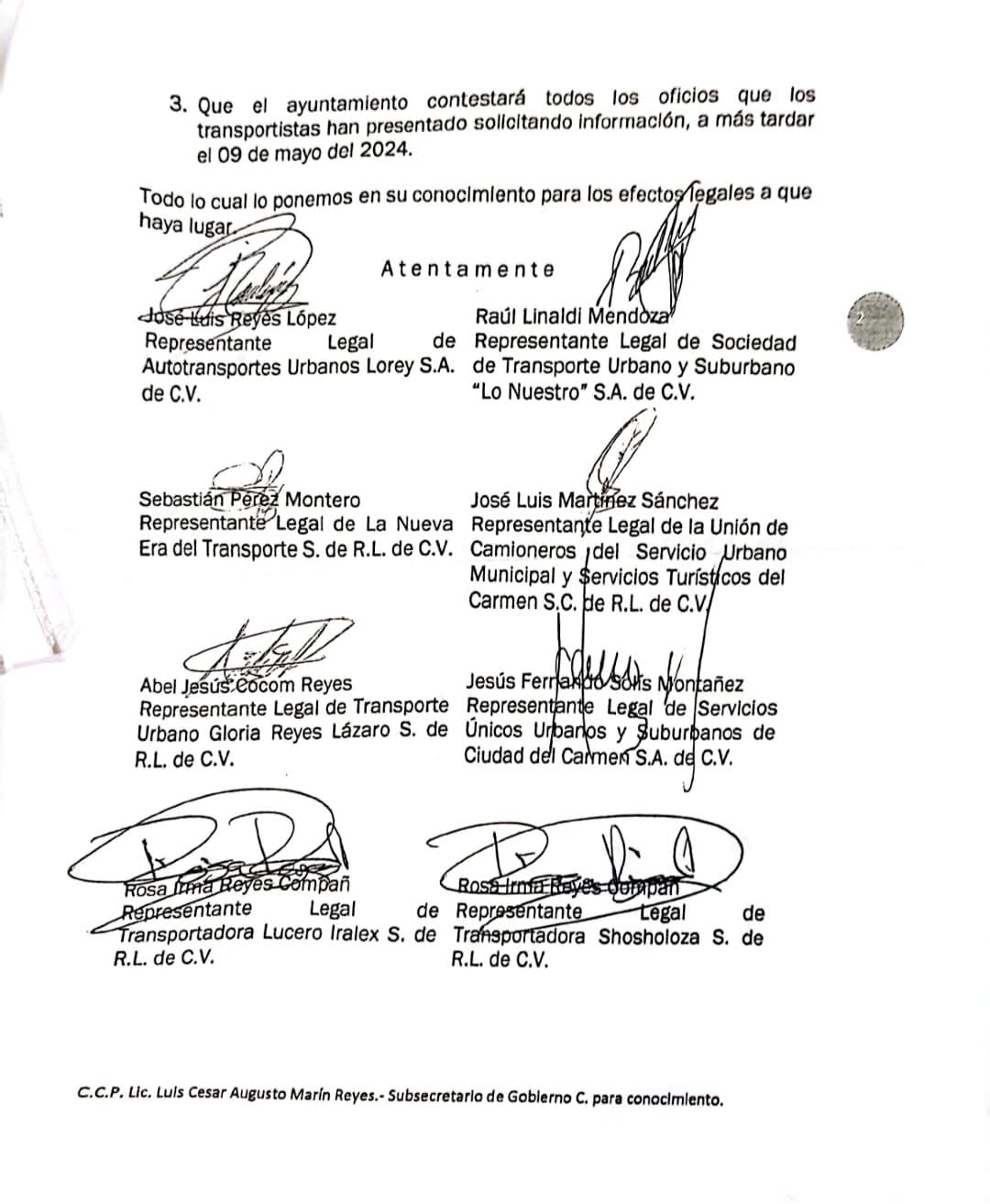 Sin embargo, desde el año pasado, el presidente municipal Pablo Gutiérrez Lazarus mantiene en operación los camiones municipales “Amor X Carmen”, a pesar de no contar con los permisos necesarios de la Agencia Reguladora del Transporte del Estado de Campeche (ARTEC).