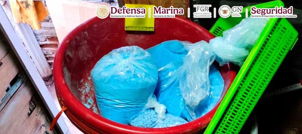 Cuando los miembros de la Defensa revisaron el sitio, encontraron diferentes tipos de narcóticos: 76.28 kilos de cocaína, 3.328 kilos de fentanilo y 2.516 kilos de “pastillas de color azul”, equivalentes a 23,083 tabletas del opioide sintético. En el predio también se encontraron tres vehículos y 10 cartuchos útiles. La droga y los objetos asegurados quedaron a disposición del Ministerio Público. En cuanto al inmueble, se informó que le colocaron sellos y quedó bajo resguardo policial.