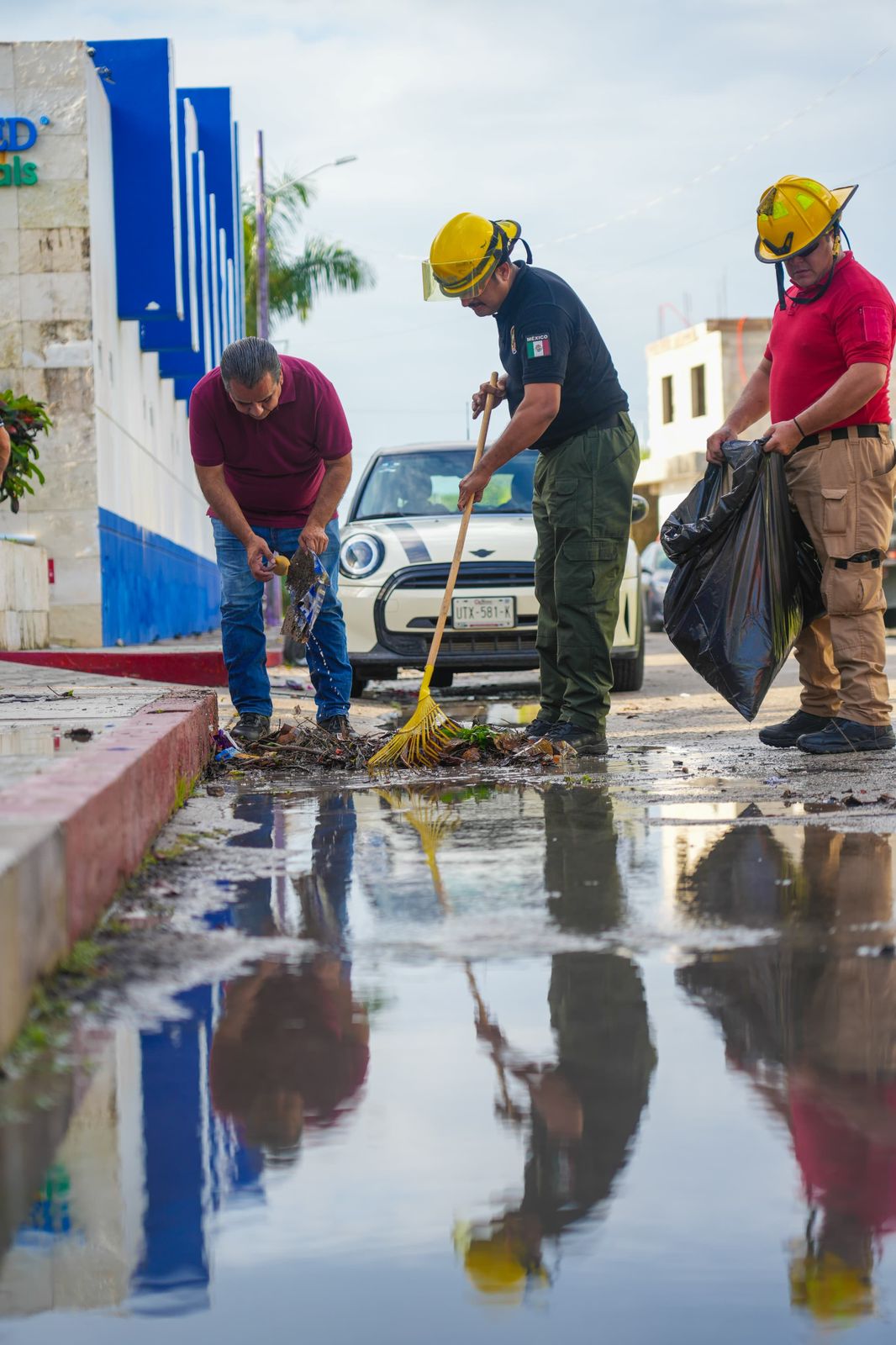 COZUMEL, Q. ROO, 21 de enero.- Después de las fuertes lluvias de esta madrugada que dejaron diversas zonas de la isla bajo el agua, las direcciones de Protección Civil y Servicios Públicos continúan realizando recorridos para supervisar los trabajos de limpieza en diversos puntos de la ciudad, con el fin de garantizar que las rejillas y registros pluviales no estuvieran obstruido.