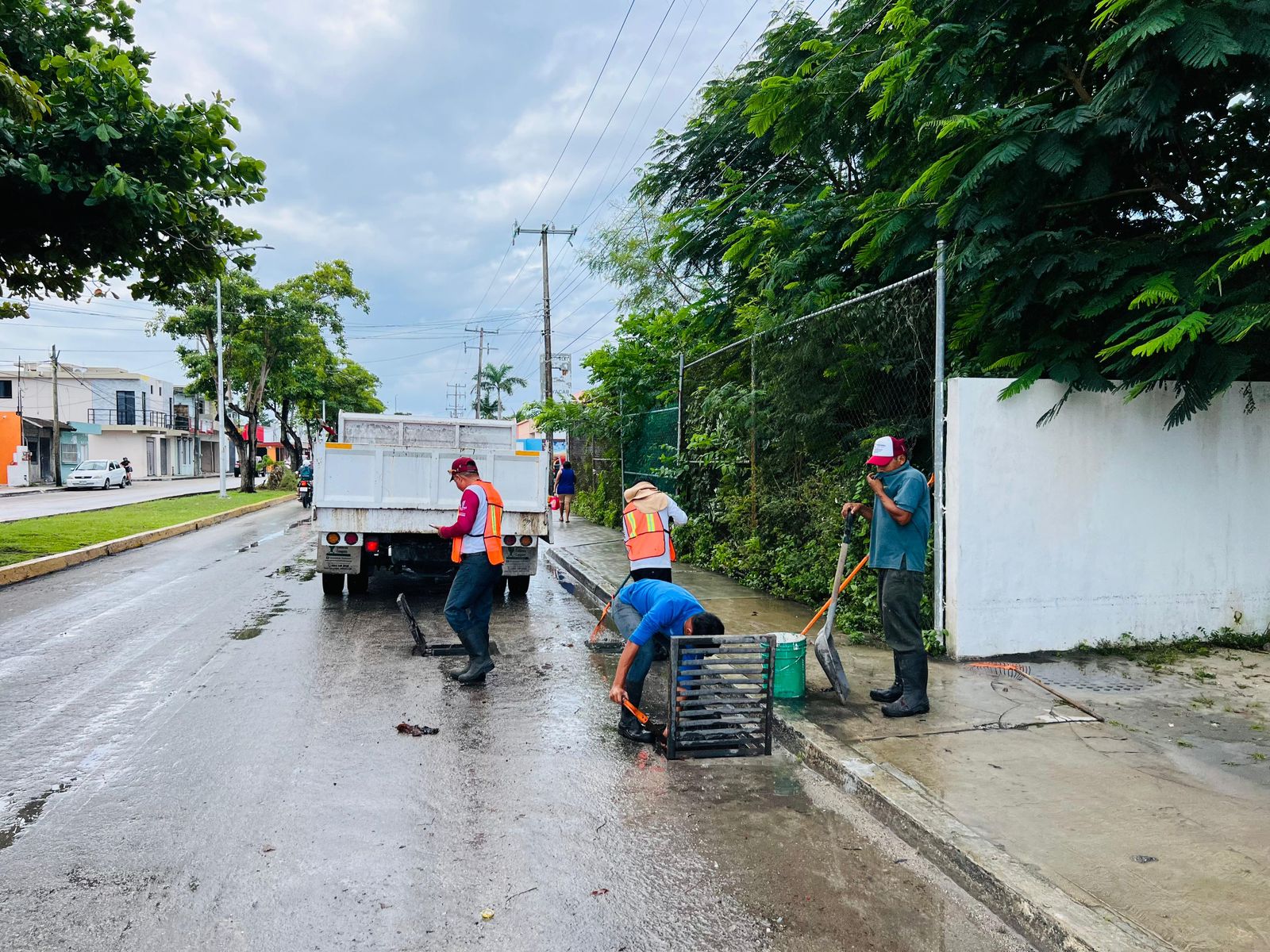 Tras Intensas Lluvias, Continúan Trabajos de Limpieza de Rejillas y Registros Pluviales en Cozumel