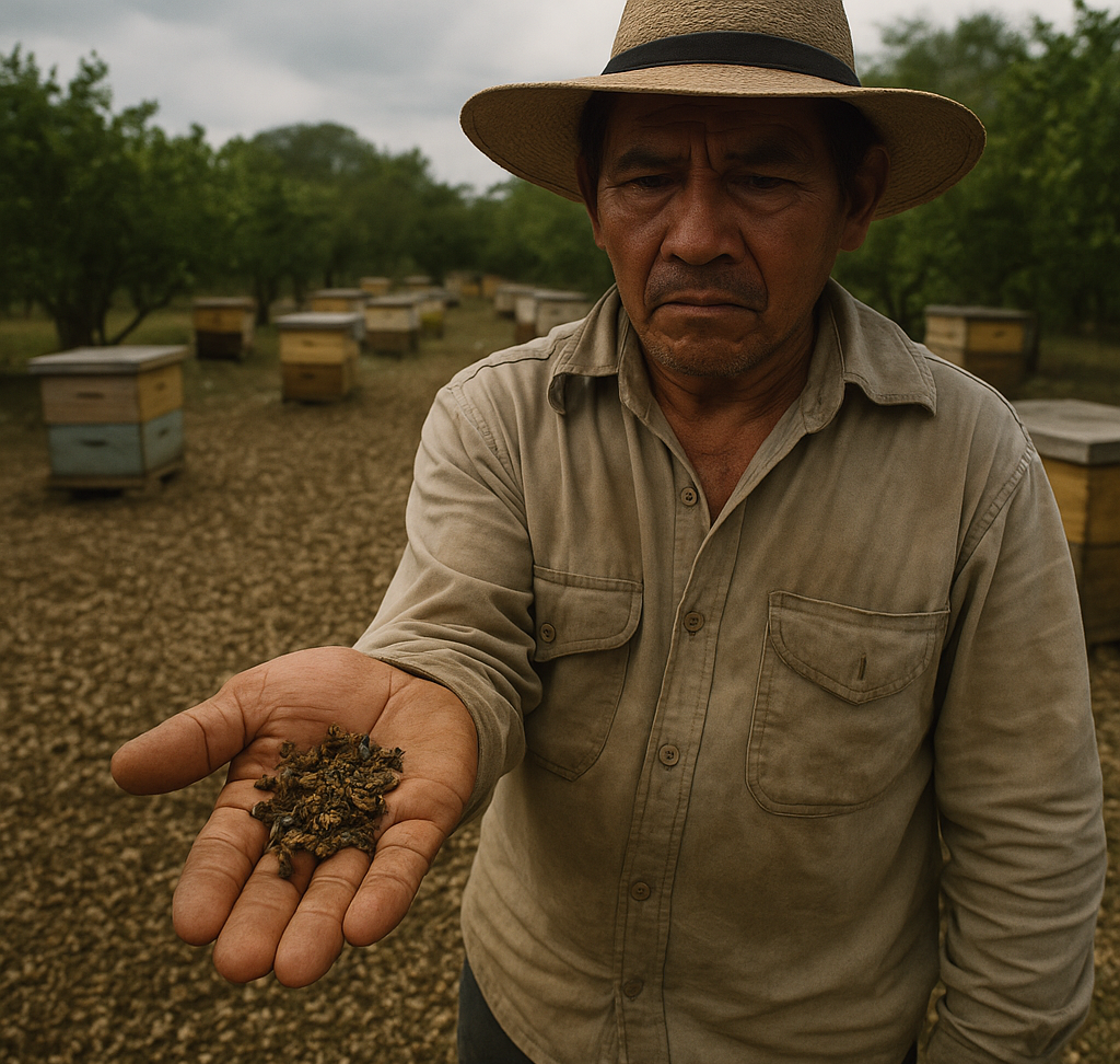 La escena en los apiarios fue desoladora, alfombras de abejas muertas cubrían el suelo alrededor de las colmenas, un fenómeno que los habitantes describen como un verdadero “ecocidio”.